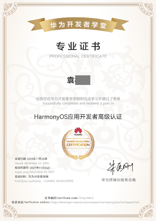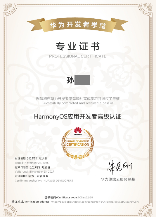 培训为期三天,课程设置系统全面,紧扣“实战化”与“认证化”目标,涵盖HarmonyOS核心开发技术、ArkUI实战及高级应用部署等内容。学员在讲师指导下深入研讨、积极实践,教学效果显著。经严格考核,本期多数参训师生顺利通过认证,荣获“HarmonyOS应用开发者高级认证证书”,展现了扎实的学习成效与教学转化潜力。