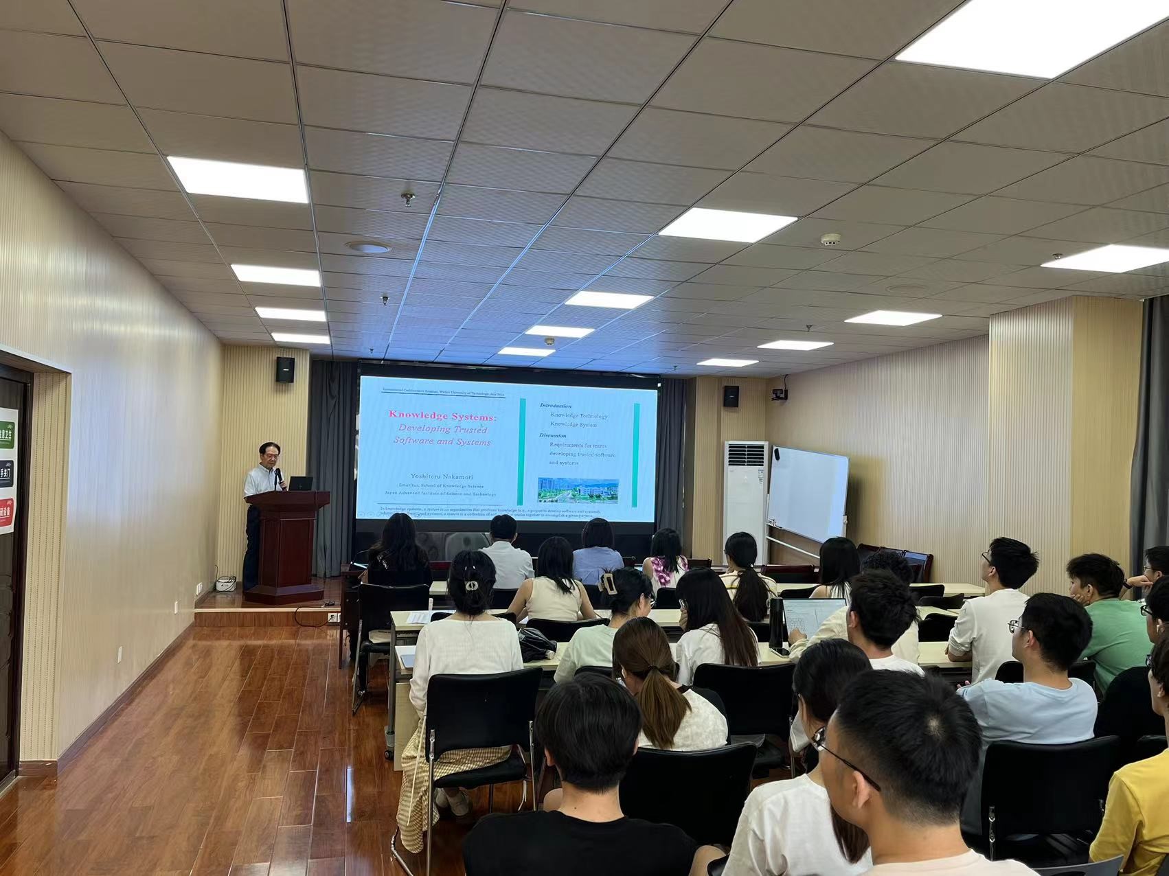 为增进师生对知识系统领域的深入理解,探索开发可信软件与系统的前沿技术,公司于7月2日下午14:00在学海楼510报告厅举办了一场主题为“知识系统:开发可信的软件和系统”的学术讲座。受田璟副教授邀请,本次讲座由日本先进科学技术研究院的中森义辉教授主持讲解。讲座旨在通过中森义辉教授的丰富经验和独到见解,为师生们打开一扇通往知识系统技术创新与实践应用的新大门,公司的众多师生积极参与,现场座无虚席。