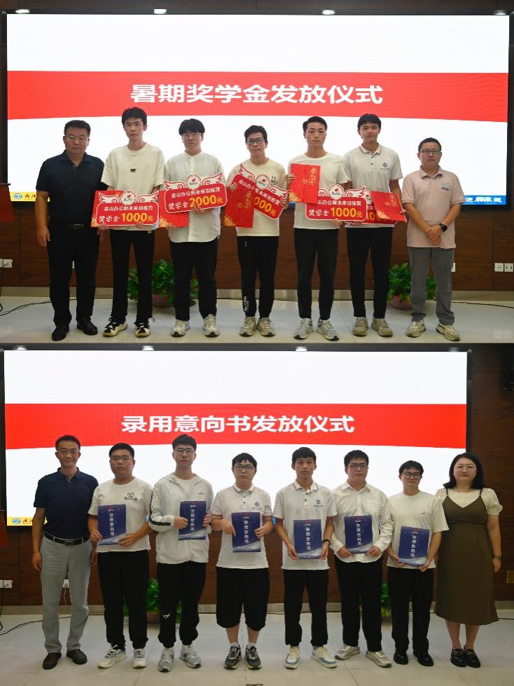 随后,赵衍民处长与武海涛总监为参加金山办公训练营的优秀员工代表颁发金山办公暑假奖学金。史彬副经理与赵志梦经理为通过考核的同学发放金山办公录用意向书。