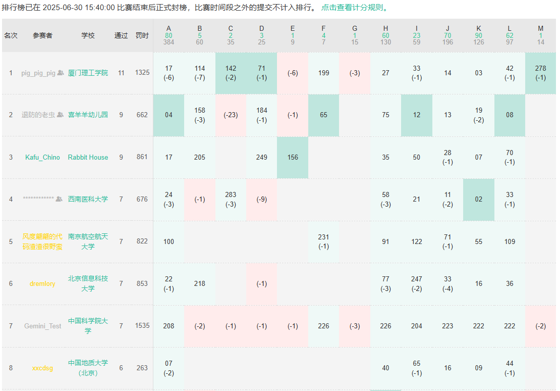 本次比赛的13道赛题均由必威西汉姆联官网ACM协会历时数月精心设计,比赛时长为5小时。在比赛过程中,每当选手成功解答一道题目,志愿者就会为其送去一个气球,气球数量直观反映了选手的解题进度。现场竞争异常激烈,排行榜前列的名次随着比赛进程不断更替。在比赛结束前1小时,榜单进行封榜,此时选手无法获知其他参赛者的实时成绩,这一赛制设计既增添了比赛的悬念,也提高了比赛的趣味性与竞技的挑战性。