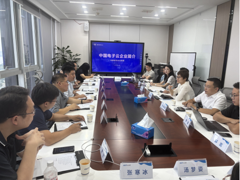 接下来,郑渤龙一行来到中国电子云公司开展座谈。座谈会上,公司总经理陈茜茜详细介绍了长江云通的核心业务及典型案例,郑渤龙经理高度赞扬了中国电子云公司的技术成果,并针对性指出各位青年教师的科研工作与长江云通核心业务的契合点。他表示,双方可以本次交流座谈为契机,全面推进双方在技术研发、项目申报、人才培养等方面的合作。