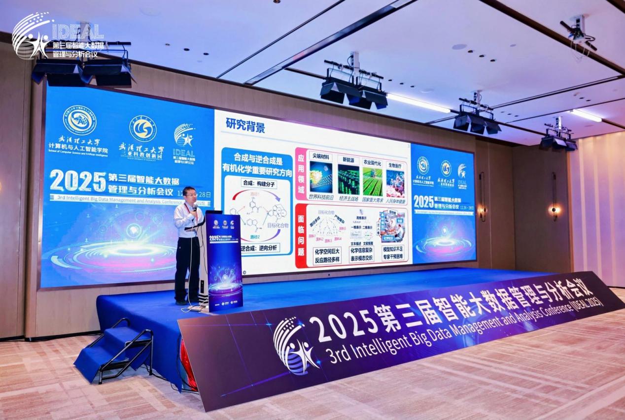 首先,中国科学技术大学讲席教授、国家级领军人才常晓军代表团队作《化学合成与逆合成的人工智能求解》主旨报告。报告聚焦AI在前沿科学领域的应用,介绍了团队研发“Molecule Factory”智能计算平台,该平台通过三维反应级图表征模型与化学知识引导的隐私逆合成框架,实现了涵盖路径规划、产率预测及全自动路线设计的化学合成全流程智能化。常教授特别提到,相关技术在湿实验验证中展现出堪比人类专家的化学洞察力,并在蛋白降解药物研发及新材料设计领域实现了百倍级的研发加速,为化学智能化转型提供了重要范式。