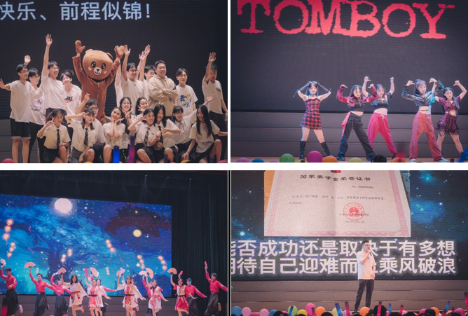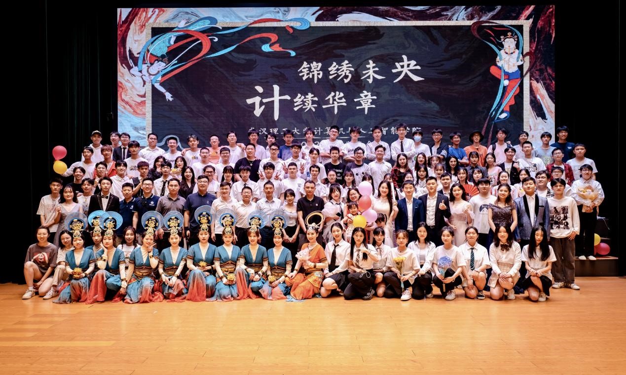 最后,晚会来到最后一篇章:“扬帆远航”。歌舞《想见你》、乐器演奏《时间煮雨》、串烧《仲夏夜之花》都让现场的观众不禁合唱出声,“我们说好不分离,要一直一直在一起”也是每位毕业生的肺腑之言。在男团舞《run away from fake love》的热烈表演后,朗诵《理工日历》又将同学们带入回忆,一千多个日夜的朝夕陪伴将永远定格在我们心上,就此别过我的恩师、朋友、武汉理工和我的青春。最后,辅导员邓佳和周豪义老师带来了歌曲《这世界那么多人》,合唱的欢快和离别的悲伤交杂,让现场气氛再次达到高潮。